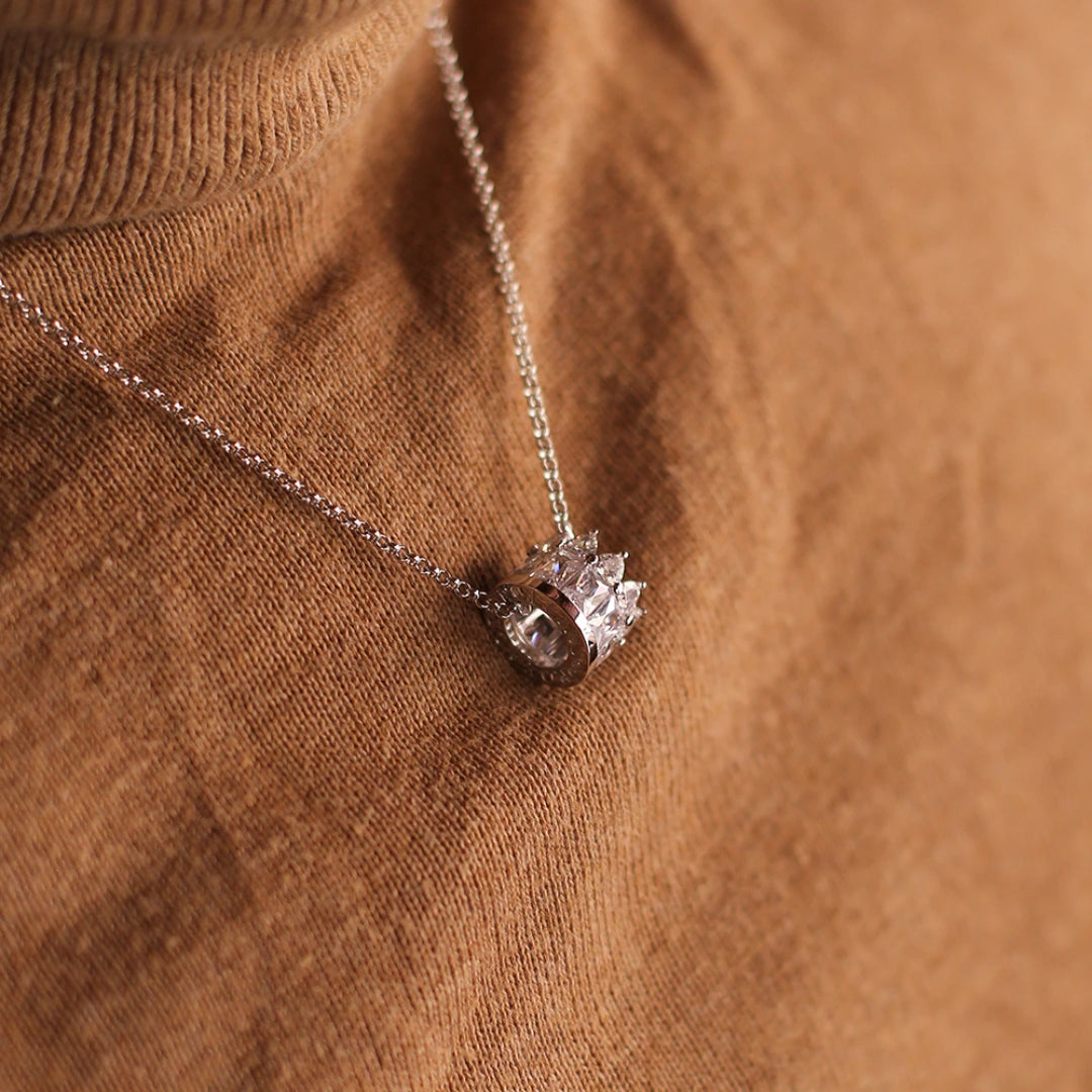 Nový moderní design klasického přívěsku eternity ring s náznaky italské inspirace. Na tento náhrdelník ve tvaru korunky není snadné zapomenout. Jako nositel může být váš odkaz také tak snadno zapomenut.