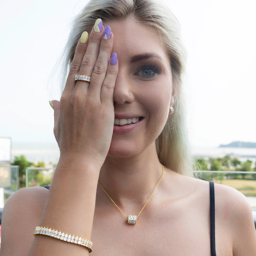 MATERIALS: Gold Vermeil - (base - 925 silver, plate - 18k yellow gold), 5A cubic zirconia diamonds