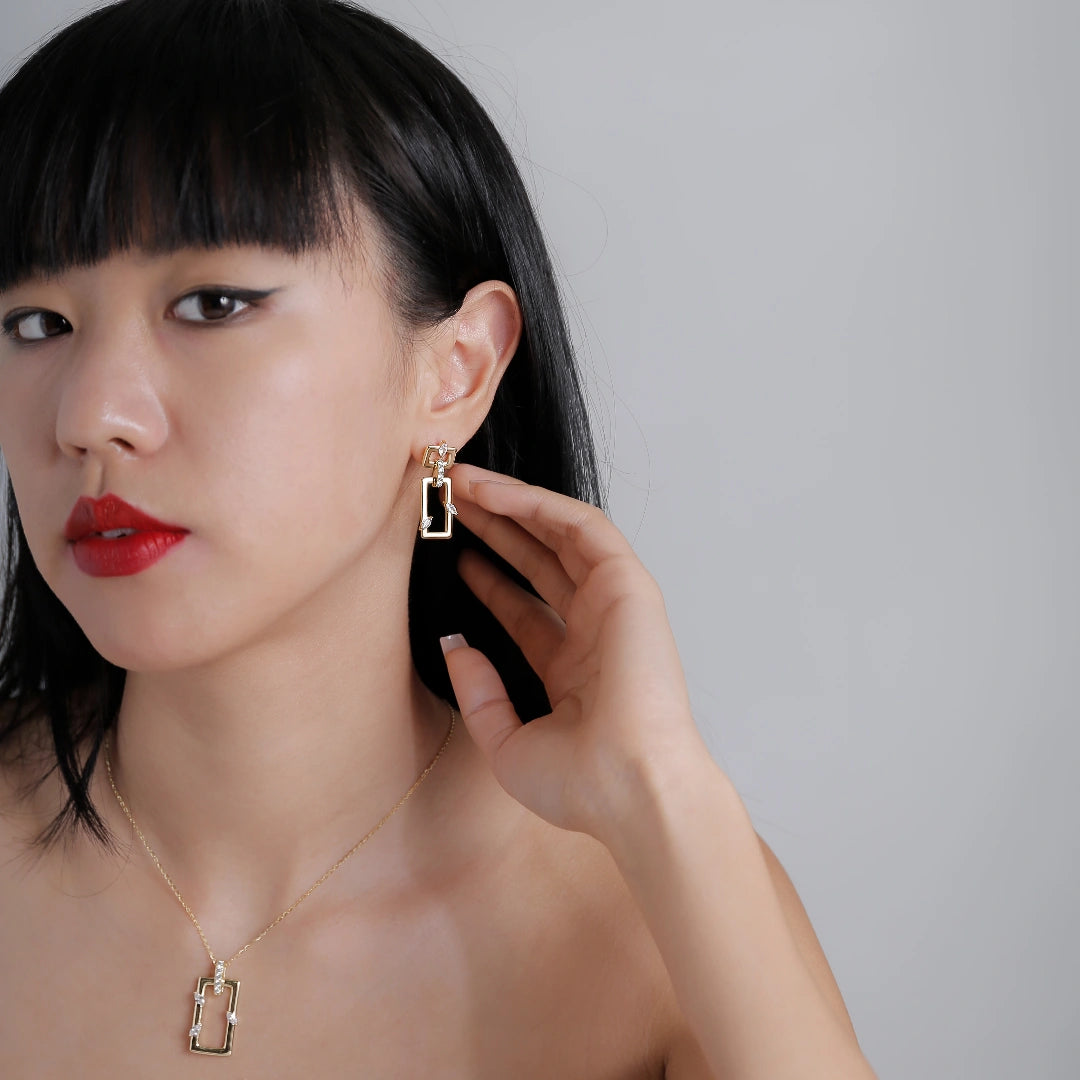 Rectangular Earrings Jasmine Breeze Collection Designed by Golnaz Niazmand