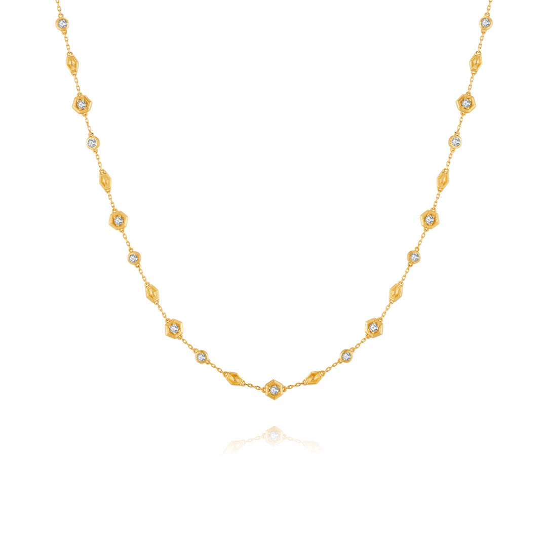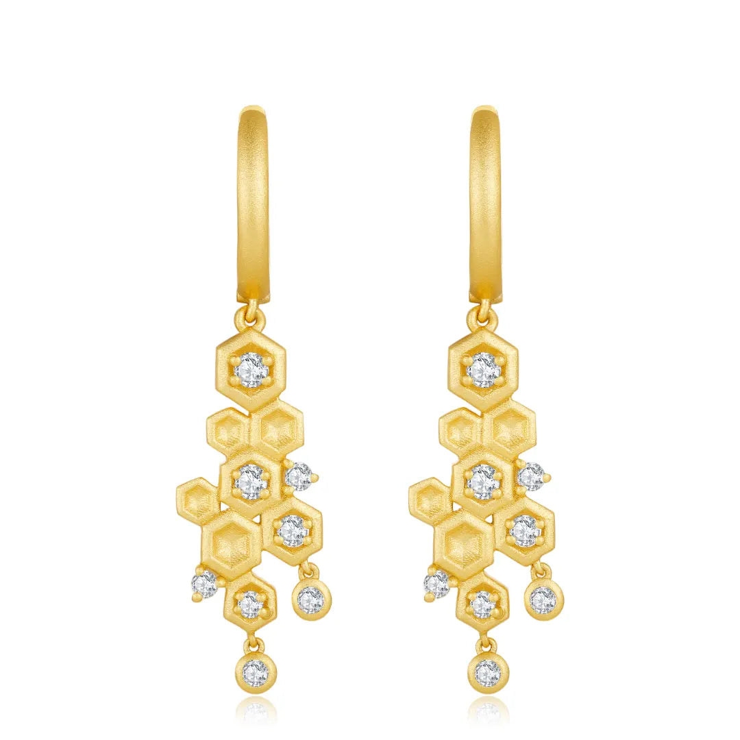 Hoop Perings ni njia kamili ya kumaliza mavazi yoyote. Ni rahisi, maridadi na hutoa njia bora ya kuvaa nguo zako na kuonekana kwa ujumla. Heki zina jiwe la zirconia la mchembe uliowekwa juu ya kila tone la masikio na vile vile mawe madogo ya zirconia ya mfumo kwenye waya nyeupe ya dhahabu.